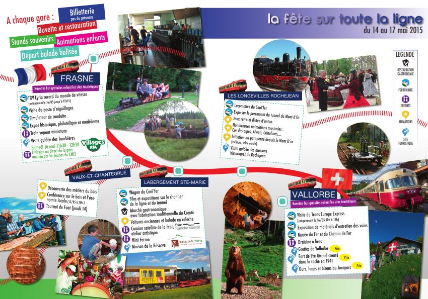 Le film sur le Frasne-Vallorbe sera diffusé en permanence au cours de la semaine du 11 au 17 mai, lors des commémorations, sur le site de la gare de Labergement-Sainte-Marie Il sera disponible en DVD sur place, inclus au sein d’un numéro hors-série de la revue Racines, numéro également consacré à la construction de cette voie. L’ensemble, au prix de 15 euros, est en vente :